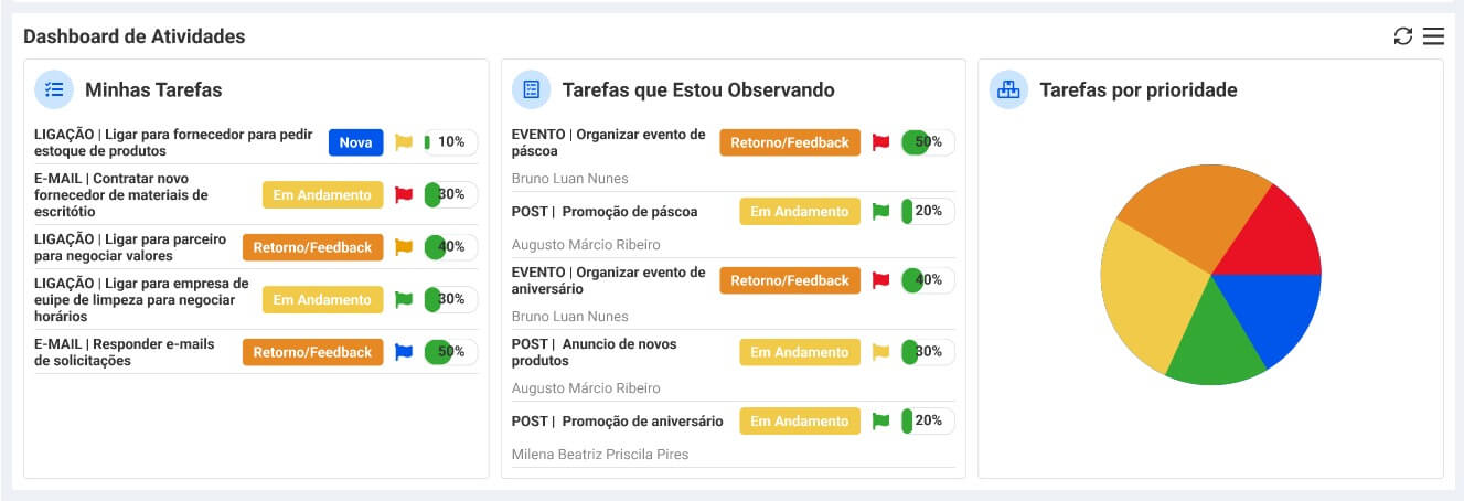 Tenha uma organização visual das atividades da sua empresa que estão vinculadas ao módulo de Gestão de Atividades do sistema.