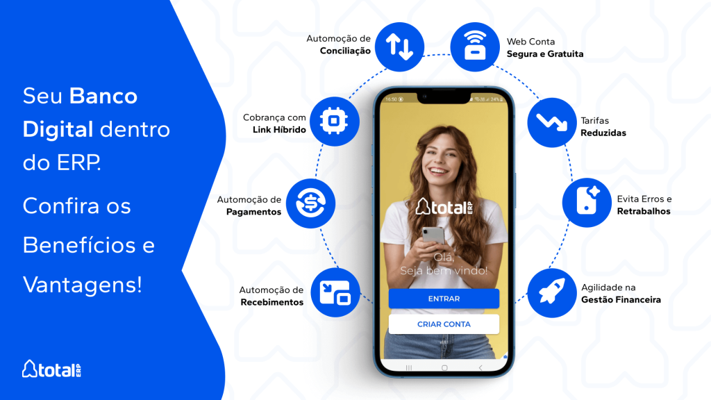 TotalERP CASH: sua conta digital integrada ao sistema de gestão mais completo do país.